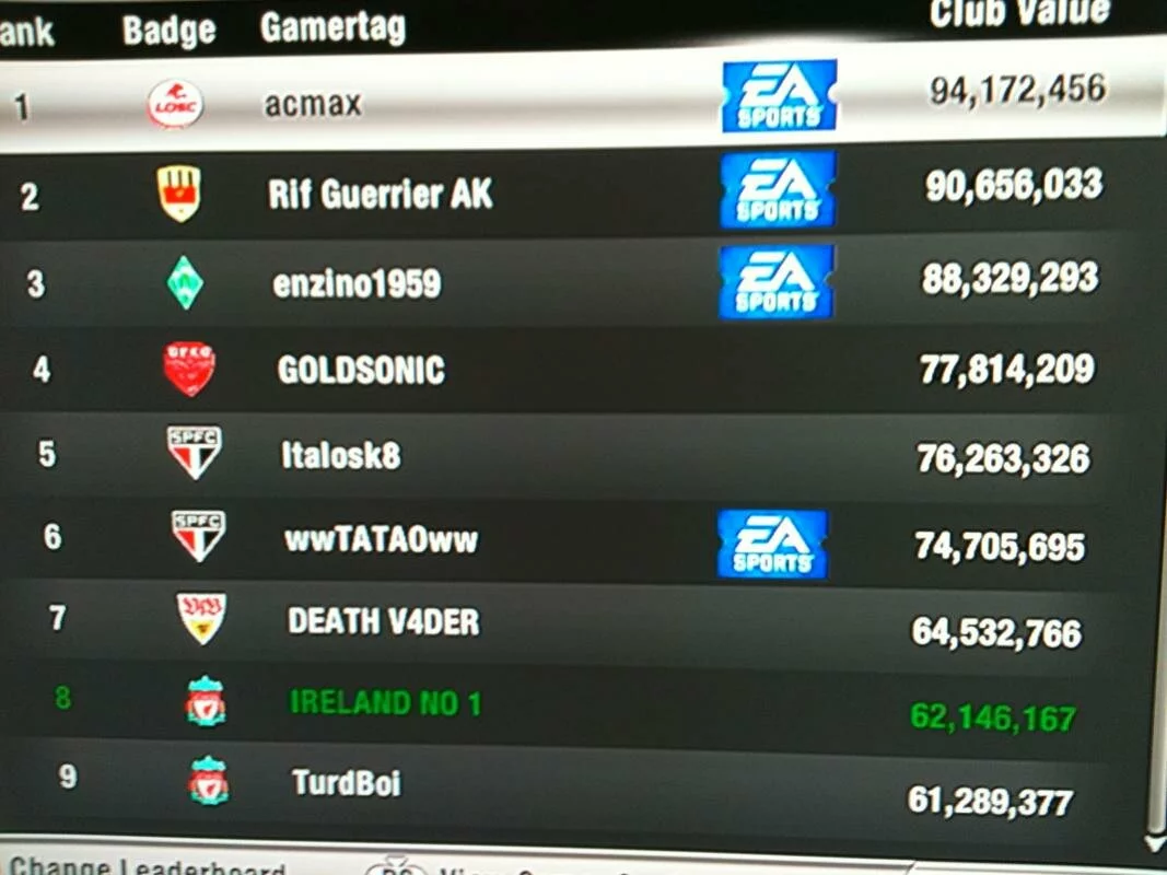 Here is the pick of my gamercard no 8 in the world from launch day this week, the guys at the top overall played the online Fifa app for months trading players lol.